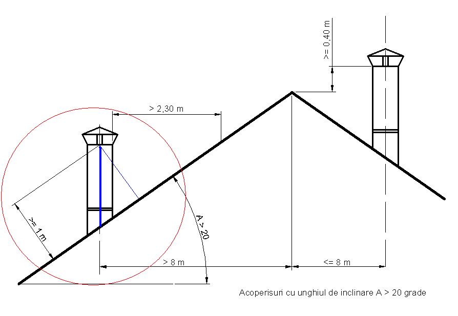 Am atasat regimul inaltimilor ce trebuiesc respectate. Daca nu se respecta apare riscul de a nu functiona corect cosul de fum si datorita curentilor de aer sa-ti genereze efectul de dop la cosul de fum.