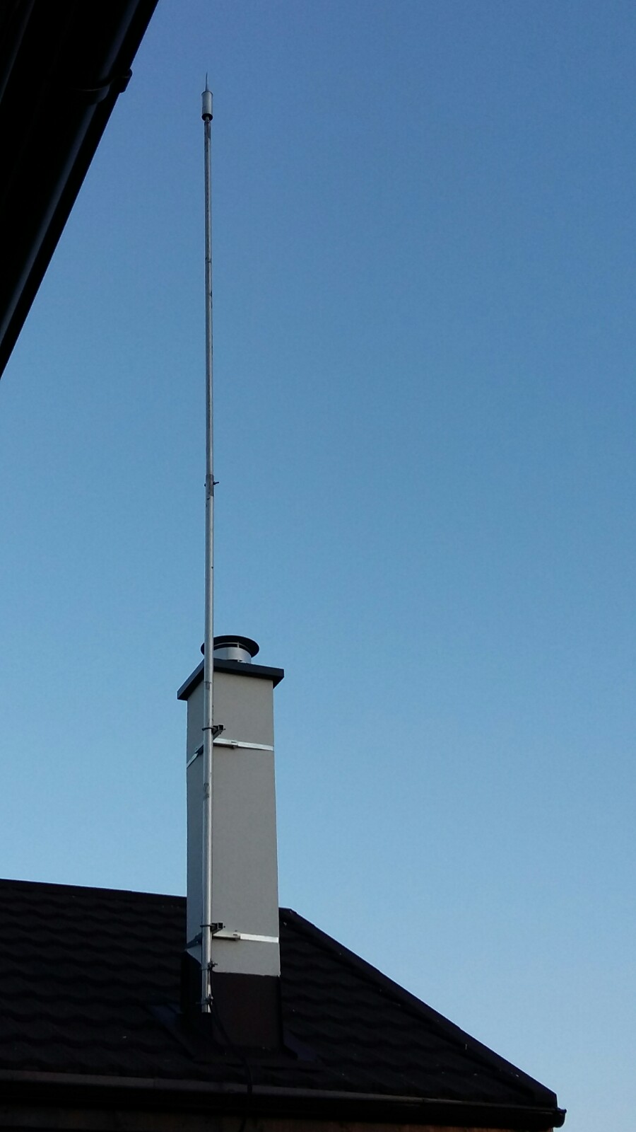 Paratrasnet Aiditec amplasat pe cosul semineului unei case din lemn.