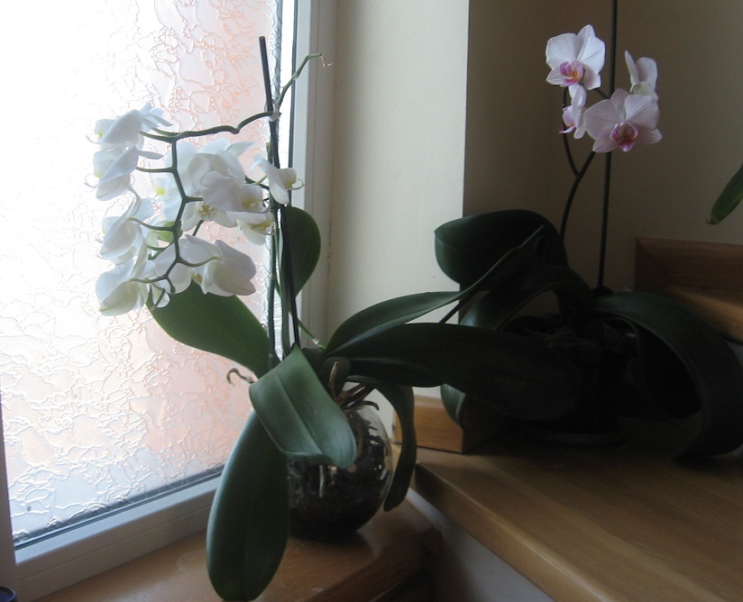 Uitati si o poza cu orhideele mele inflorite. Sper sa infloreasca si cea de a treia. Din pacate pe aceasta am tinut-o o vreme in conditii mai putin prielnice (lumina insuficienta), dar sper sa-si revina si ea.