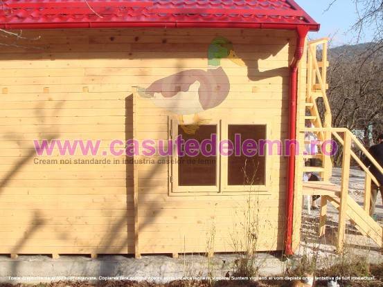 Casa de lemn 6x5m, grosime perete 44 mm, kitul casutei include ferestre si usi cu sticla, podea si asteriala pentru acoperis, feroneria, totul pentru constructia la cheie a casutei tale! Casa are 3 incaperi la parter, ce pot fi living-ul, baia si bucataria viitoarei tale case, iar la etaj un spatios dormitor, sala de recreere. Nu ezita, suna acum pentru detalii. La aceasta casuta aveti 25% reducere la pretul de pornire !