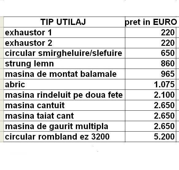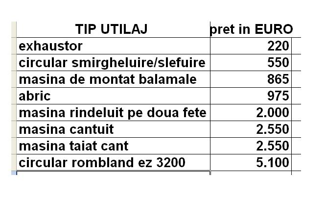 Lista utilaje si preturile in EURO: