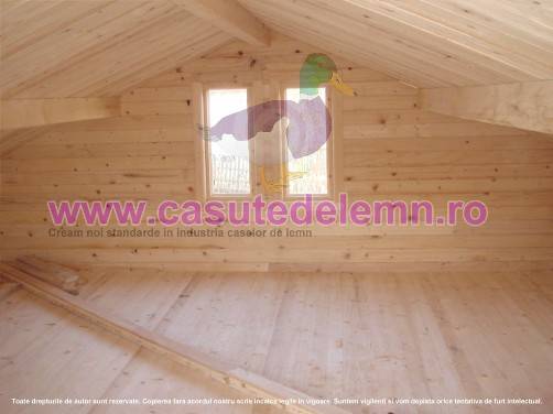 Casa de lemn 6x5m, grosime perete 44 mm, kitul casutei include ferestre si usi cu sticla, podea si asteriala pentru acoperis, feroneria, totul pentru constructia la cheie a casutei tale! Casa are 3 incaperi la parter, ce pot fi living-ul, baia si bucataria viitoarei tale case, iar la etaj un spatios dormitor, sala de recreere. Nu ezita, suna acum pentru detalii. La aceasta casuta aveti 25% reducere la pretul de pornire !