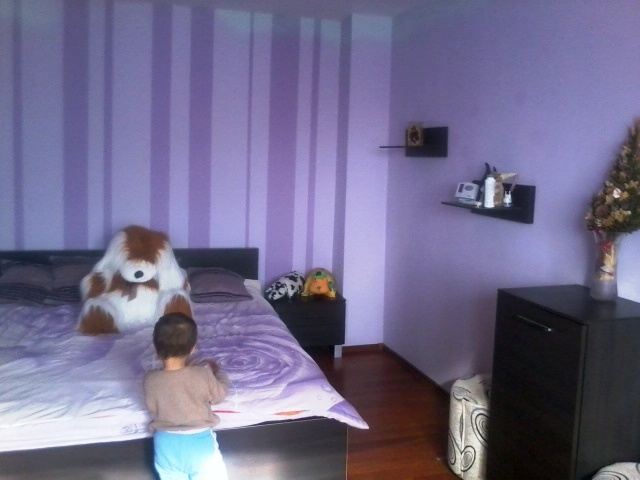 Dormitorul meu, ca sa-i dau o culoare, este lila cu dungi mai groase tot lila dar mai inchis. Mi se pare o nuanta placuta si frumoasa.