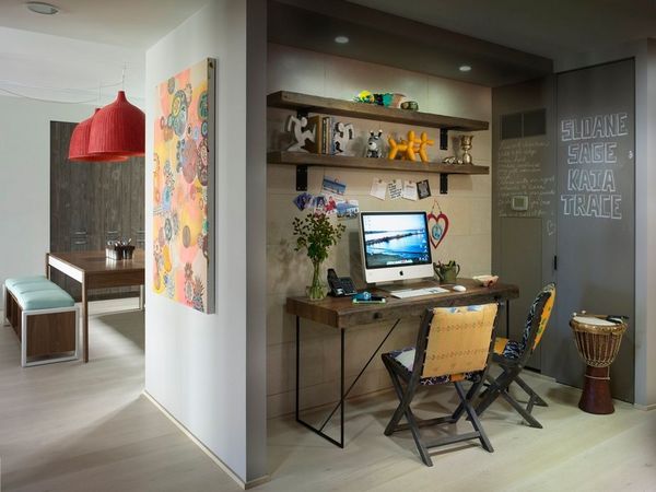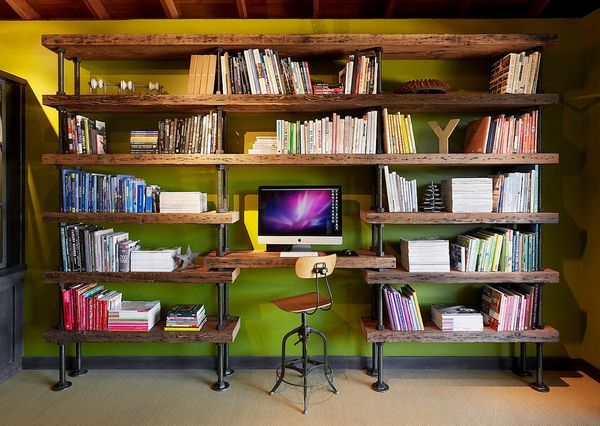 Lemnul reciclat poate fi solutia si pentru realizarea rafturilor sau chiar a mesei de lucru pentru biblioteca si biroul de acasa.