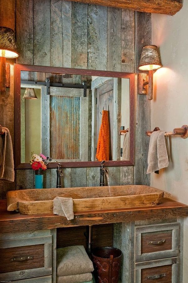 In baie, lemnul reciclat creeaza, prin textura si caldura sa, un contrast minunat cu materialele reci obisnuite intr-o astfel de incapere: gresia, faianta, sticla, ceramica, granitul sau marmura.